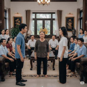 Mưa lất phất như rắc bụi bạc lên mái ngói cũ kỹ của căn biệt thự màu trắng ngà. Trong gian phòng khách…