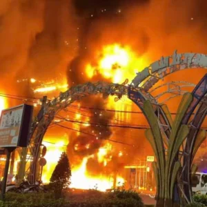 Lửa bùng lên từ căn nhà trên đường Nguyễn Tất Thành, thị trấn Năm Căn cũ, sau đó lan sang nhà và trụ…