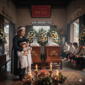 Chiều qua, con còn ríu rít ôm lấy mẹ, nói:— “Mẹ ơi, con sang nhà bạn chơi một lúc rồi về ăn cơm…